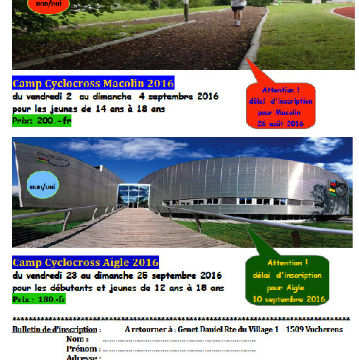 Publié 23 octobre 2014 Course de Cyclo-Cross – Planeyse 22 Novembre 2014 Le ZCC organise la 2ème manche de l’Omnium Romand de Cyclo-cross à Planeyse (Colombier) le samedi 22 novembre 2014. Départ 12h00 : […]